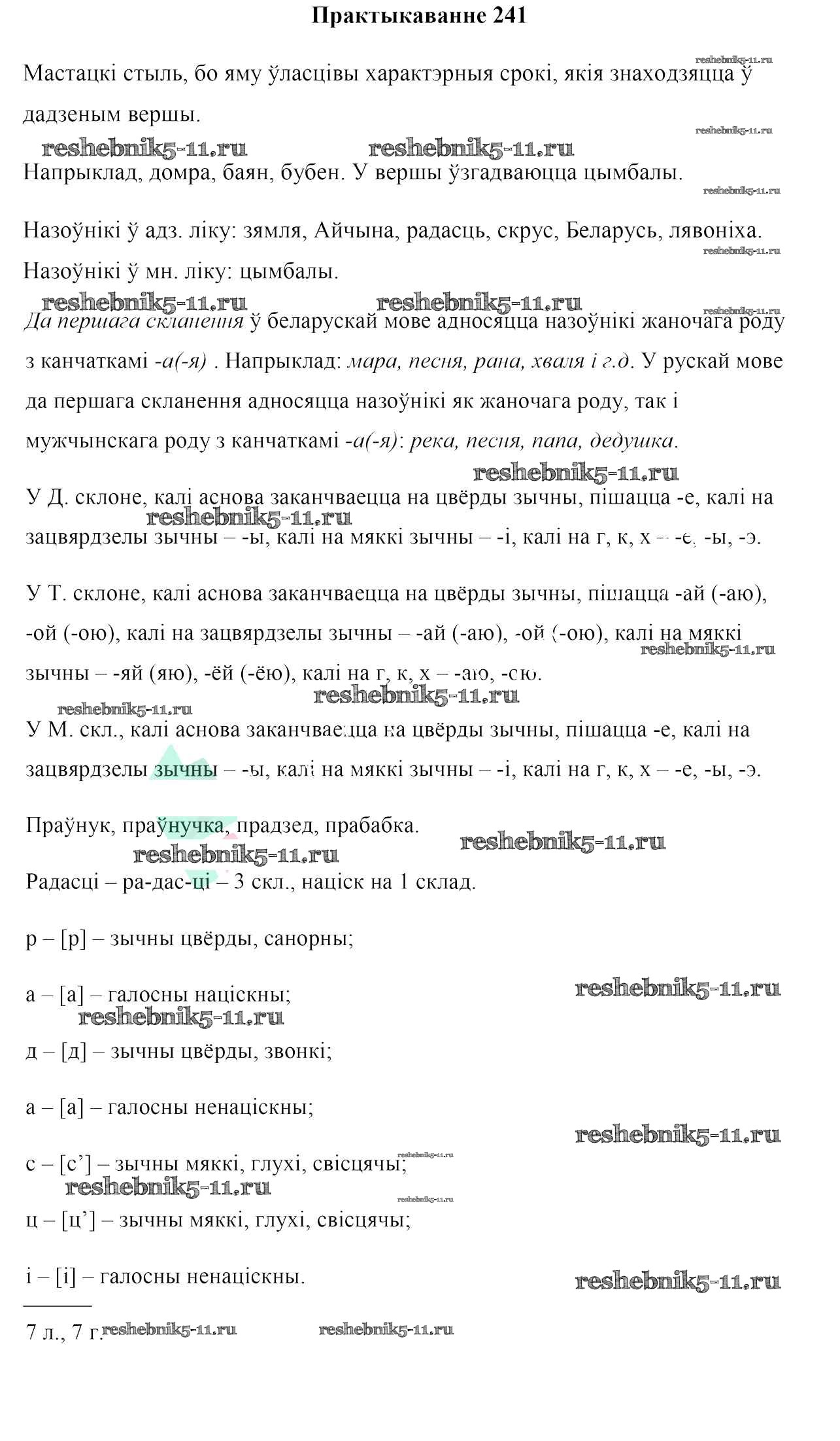 Готовая домашняя работа с ответами по Белорусскому языку за 10 класс Валочка, Васюковіч, Зелянко, Міхнёнак, Якуба Учебник Национальный институт образования 2016 ФГОС - Практыкаванні 241