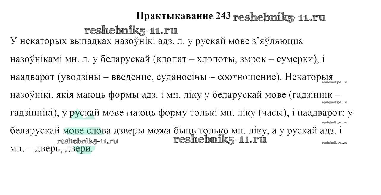 Готовая домашняя работа с ответами по Белорусскому языку за 10 класс Валочка, Васюковіч, Зелянко, Міхнёнак, Якуба Учебник Национальный институт образования 2016 ФГОС - Практыкаванні 243