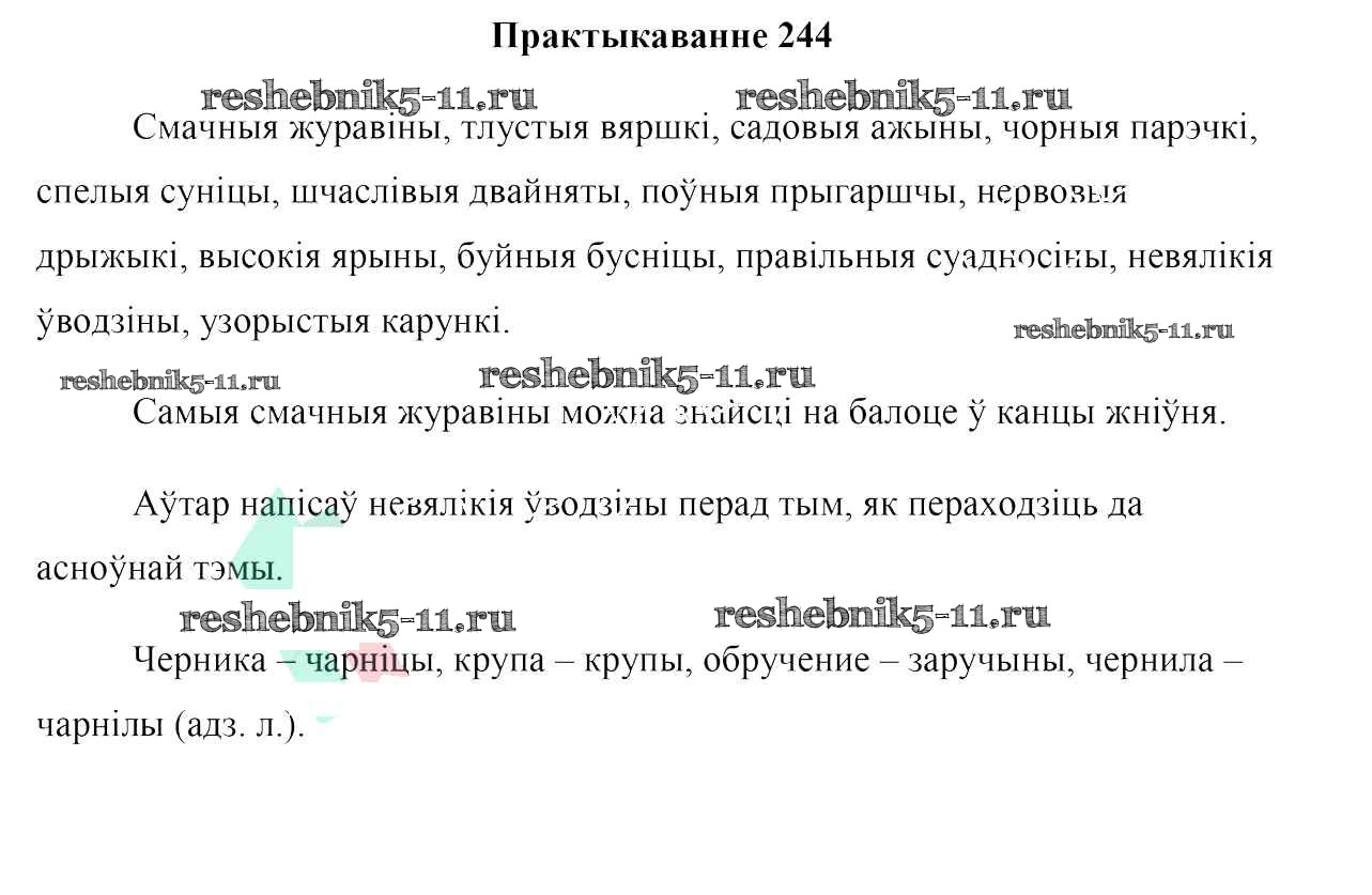 Готовая домашняя работа с ответами по Белорусскому языку за 10 класс Валочка, Васюковіч, Зелянко, Міхнёнак, Якуба Учебник Национальный институт образования 2016 ФГОС - Практыкаванні 244