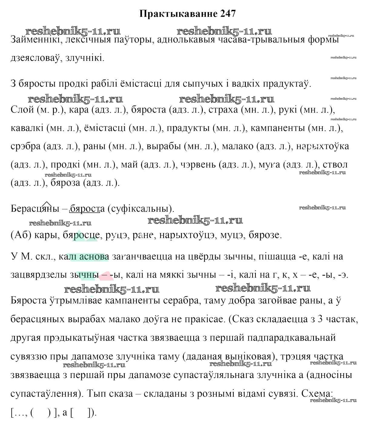Готовая домашняя работа с ответами по Белорусскому языку за 10 класс Валочка, Васюковіч, Зелянко, Міхнёнак, Якуба Учебник Национальный институт образования 2016 ФГОС - Практыкаванні 247