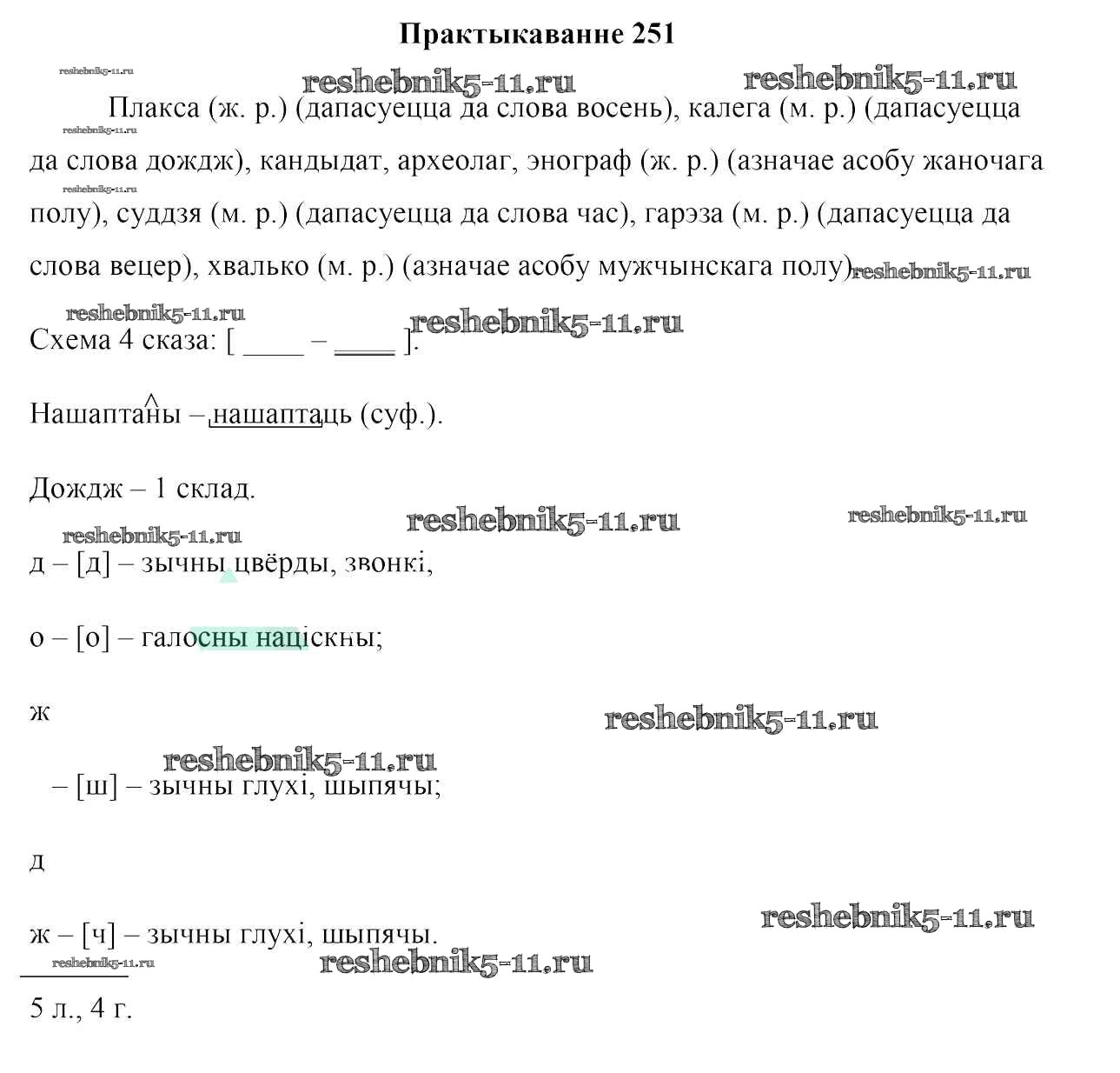 Готовая домашняя работа с ответами по Белорусскому языку за 10 класс Валочка, Васюковіч, Зелянко, Міхнёнак, Якуба Учебник Национальный институт образования 2016 ФГОС - Практыкаванні 251