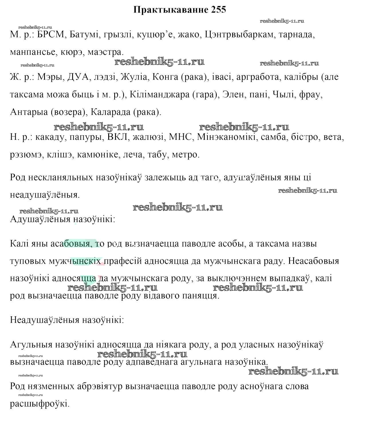 Готовая домашняя работа с ответами по Белорусскому языку за 10 класс Валочка, Васюковіч, Зелянко, Міхнёнак, Якуба Учебник Национальный институт образования 2016 ФГОС - Практыкаванні 255