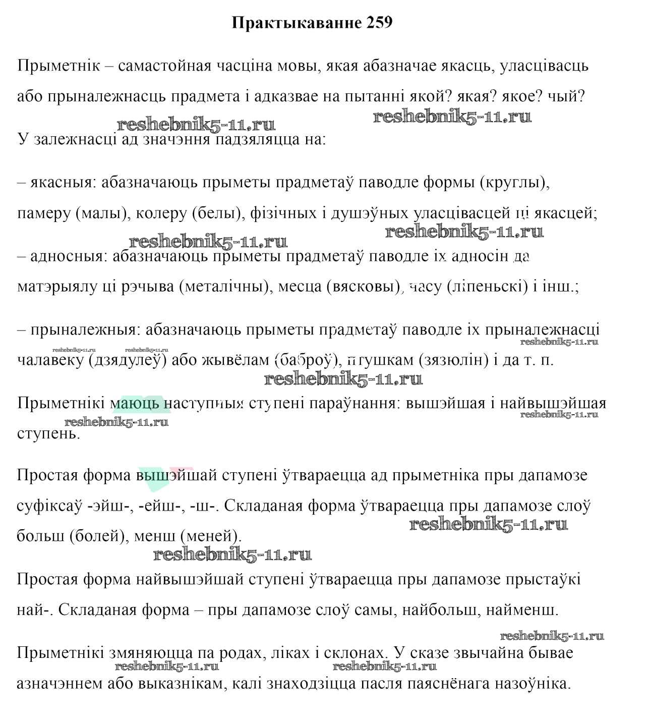 Готовая домашняя работа с ответами по Белорусскому языку за 10 класс Валочка, Васюковіч, Зелянко, Міхнёнак, Якуба Учебник Национальный институт образования 2016 ФГОС - Практыкаванні 259