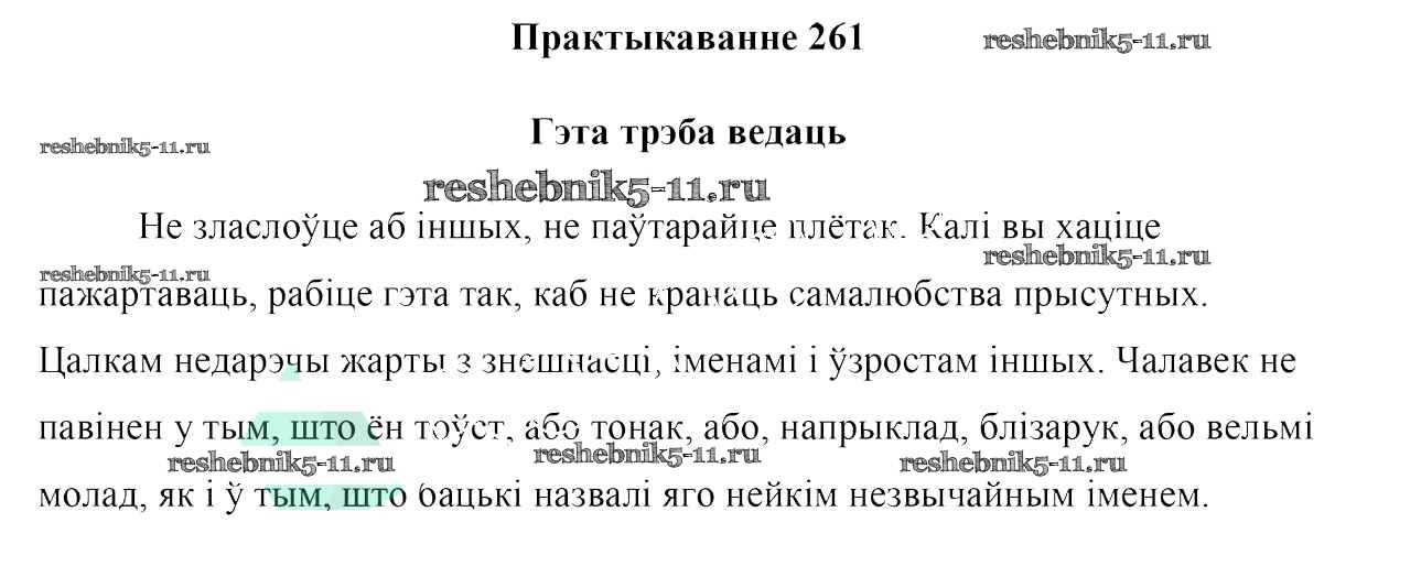 Готовая домашняя работа с ответами по Белорусскому языку за 10 класс Валочка, Васюковіч, Зелянко, Міхнёнак, Якуба Учебник Национальный институт образования 2016 ФГОС - Практыкаванні 261