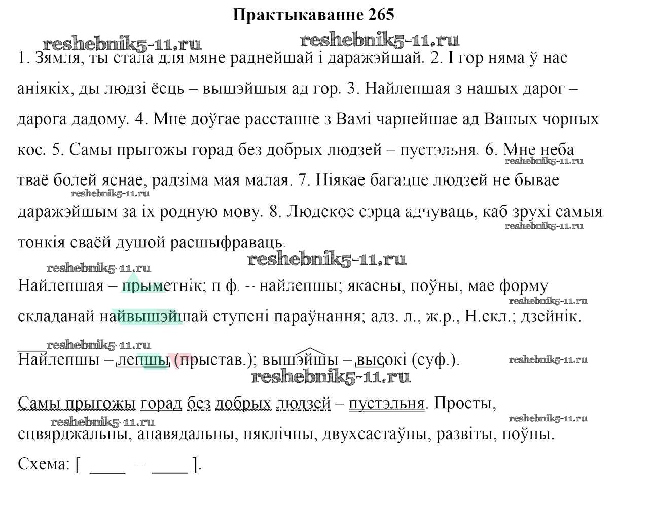 Готовая домашняя работа с ответами по Белорусскому языку за 10 класс Валочка, Васюковіч, Зелянко, Міхнёнак, Якуба Учебник Национальный институт образования 2016 ФГОС - Практыкаванні 265