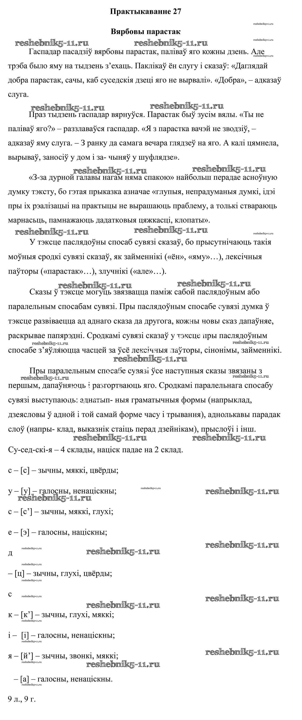Готовая домашняя работа с ответами по Белорусскому языку за 10 класс Валочка, Васюковіч, Зелянко, Міхнёнак, Якуба Учебник Национальный институт образования 2016 ФГОС - Практыкаванні 27