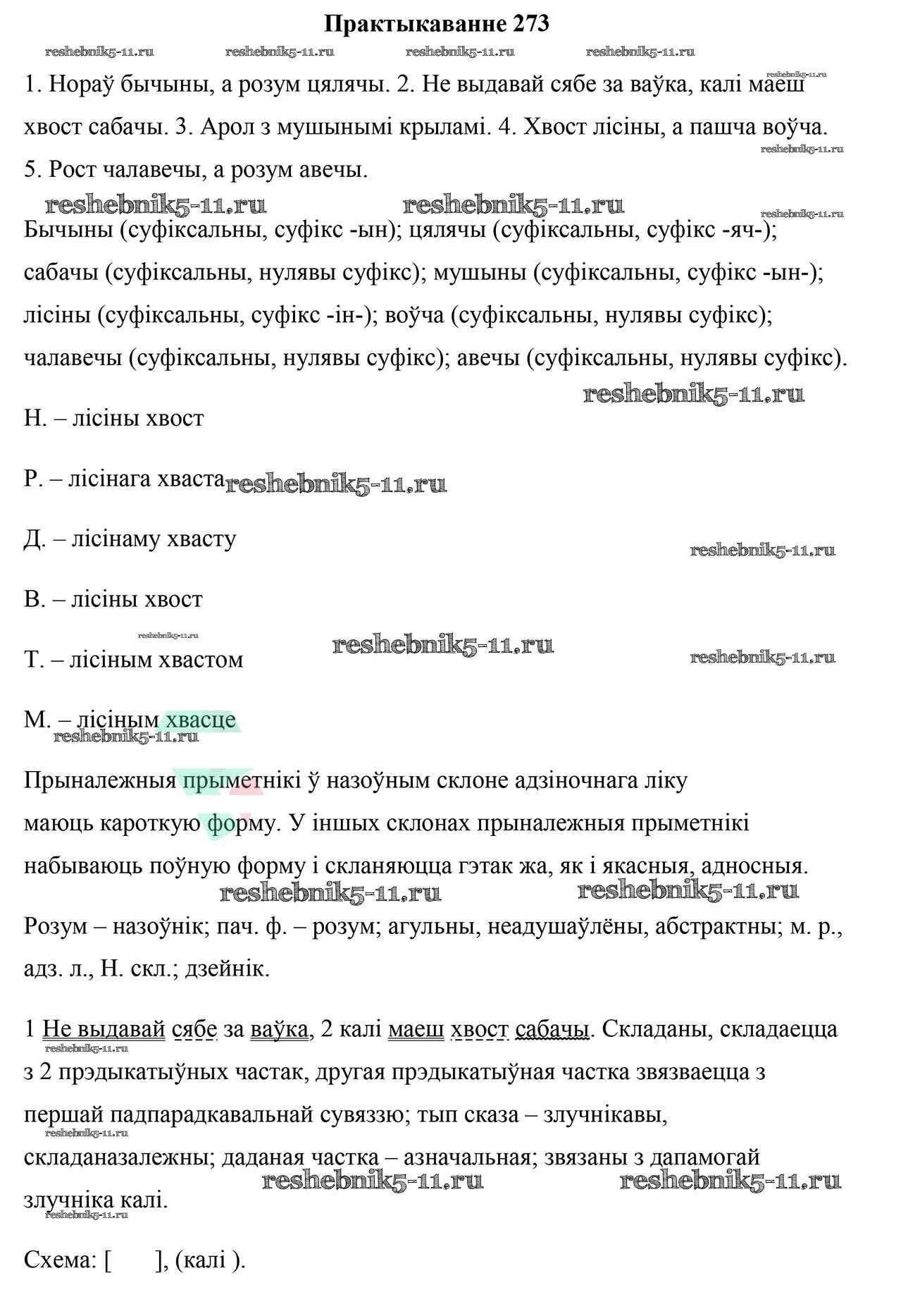 Готовая домашняя работа с ответами по Белорусскому языку за 10 класс Валочка, Васюковіч, Зелянко, Міхнёнак, Якуба Учебник Национальный институт образования 2016 ФГОС - Практыкаванні 273