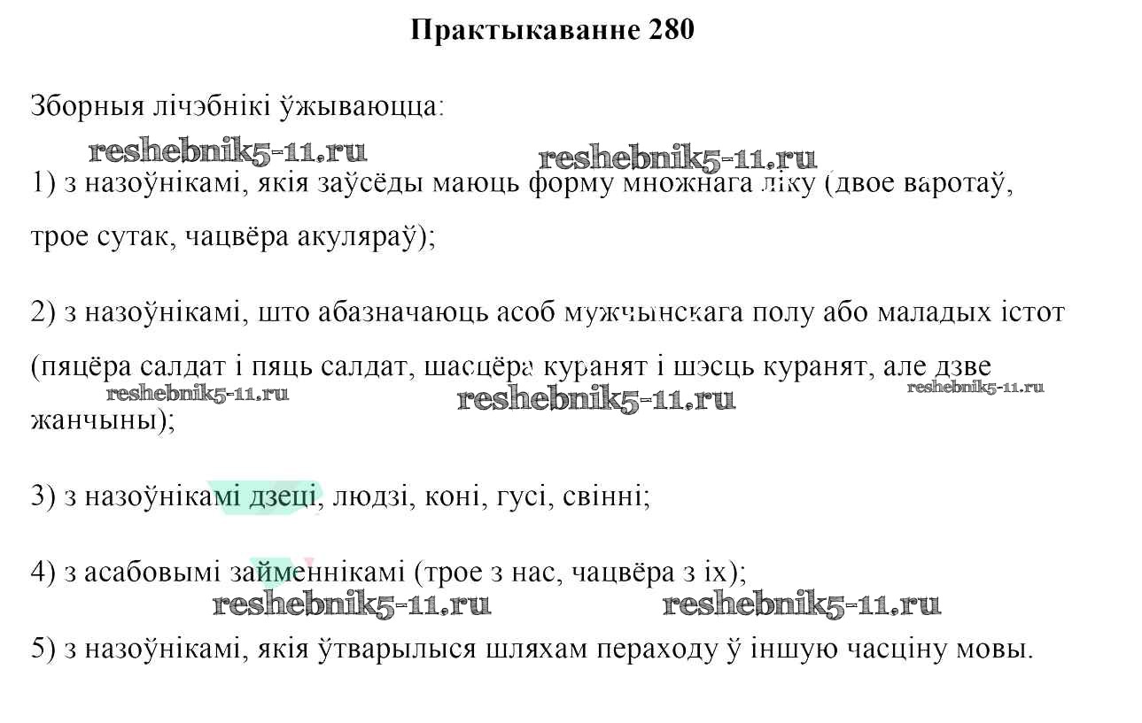 Готовая домашняя работа с ответами по Белорусскому языку за 10 класс Валочка, Васюковіч, Зелянко, Міхнёнак, Якуба Учебник Национальный институт образования 2016 ФГОС - Практыкаванні 280