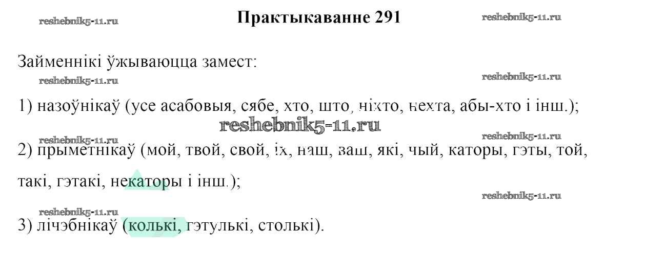 Готовая домашняя работа с ответами по Белорусскому языку за 10 класс Валочка, Васюковіч, Зелянко, Міхнёнак, Якуба Учебник Национальный институт образования 2016 ФГОС - Практыкаванні 291