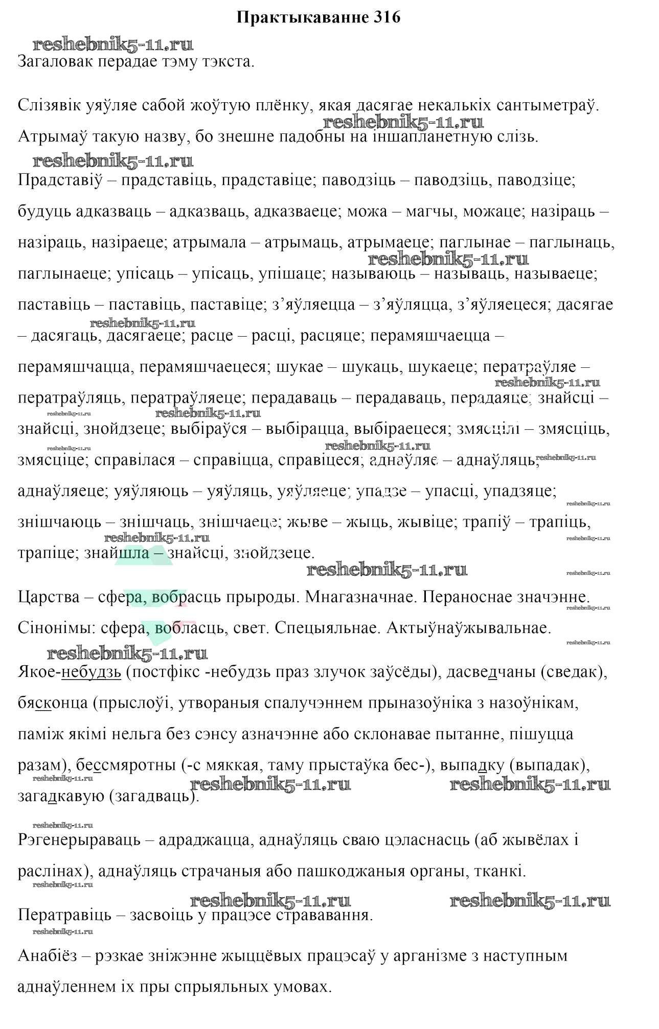 Готовая домашняя работа с ответами по Белорусскому языку за 10 класс Валочка, Васюковіч, Зелянко, Міхнёнак, Якуба Учебник Национальный институт образования 2016 ФГОС - Практыкаванні 316