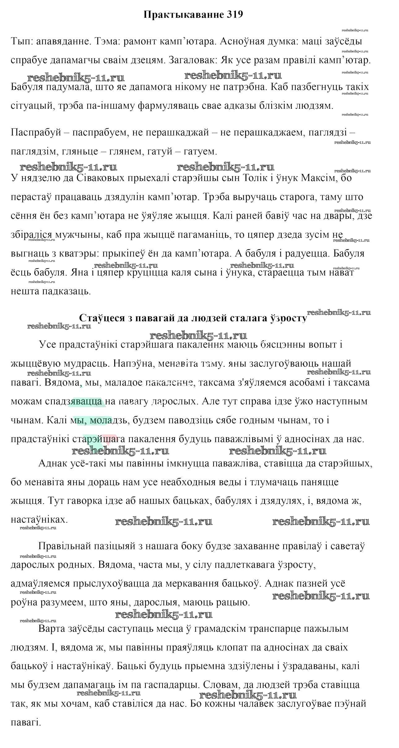 Готовая домашняя работа с ответами по Белорусскому языку за 10 класс Валочка, Васюковіч, Зелянко, Міхнёнак, Якуба Учебник Национальный институт образования 2016 ФГОС - Практыкаванні 319