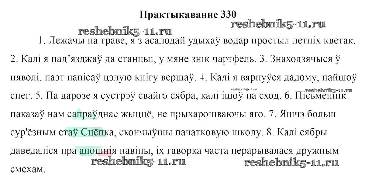Готовая домашняя работа с ответами по Белорусскому языку за 10 класс Валочка, Васюковіч, Зелянко, Міхнёнак, Якуба Учебник Национальный институт образования 2016 ФГОС - Практыкаванні 330