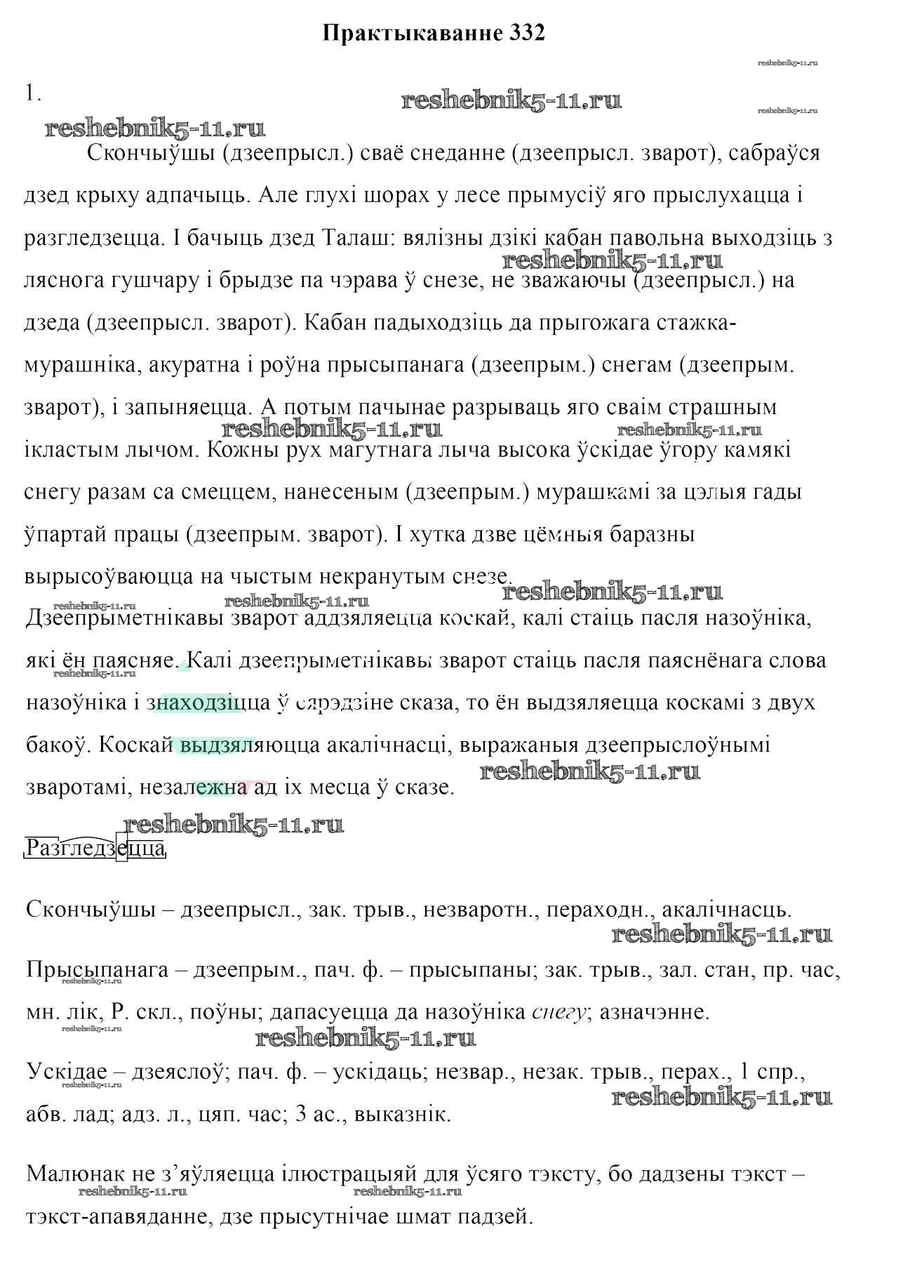 Готовая домашняя работа с ответами по Белорусскому языку за 10 класс Валочка, Васюковіч, Зелянко, Міхнёнак, Якуба Учебник Национальный институт образования 2016 ФГОС - Практыкаванні 332