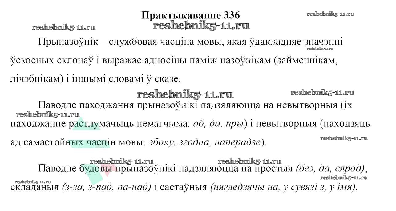 Готовая домашняя работа с ответами по Белорусскому языку за 10 класс Валочка, Васюковіч, Зелянко, Міхнёнак, Якуба Учебник Национальный институт образования 2016 ФГОС - Практыкаванні 336