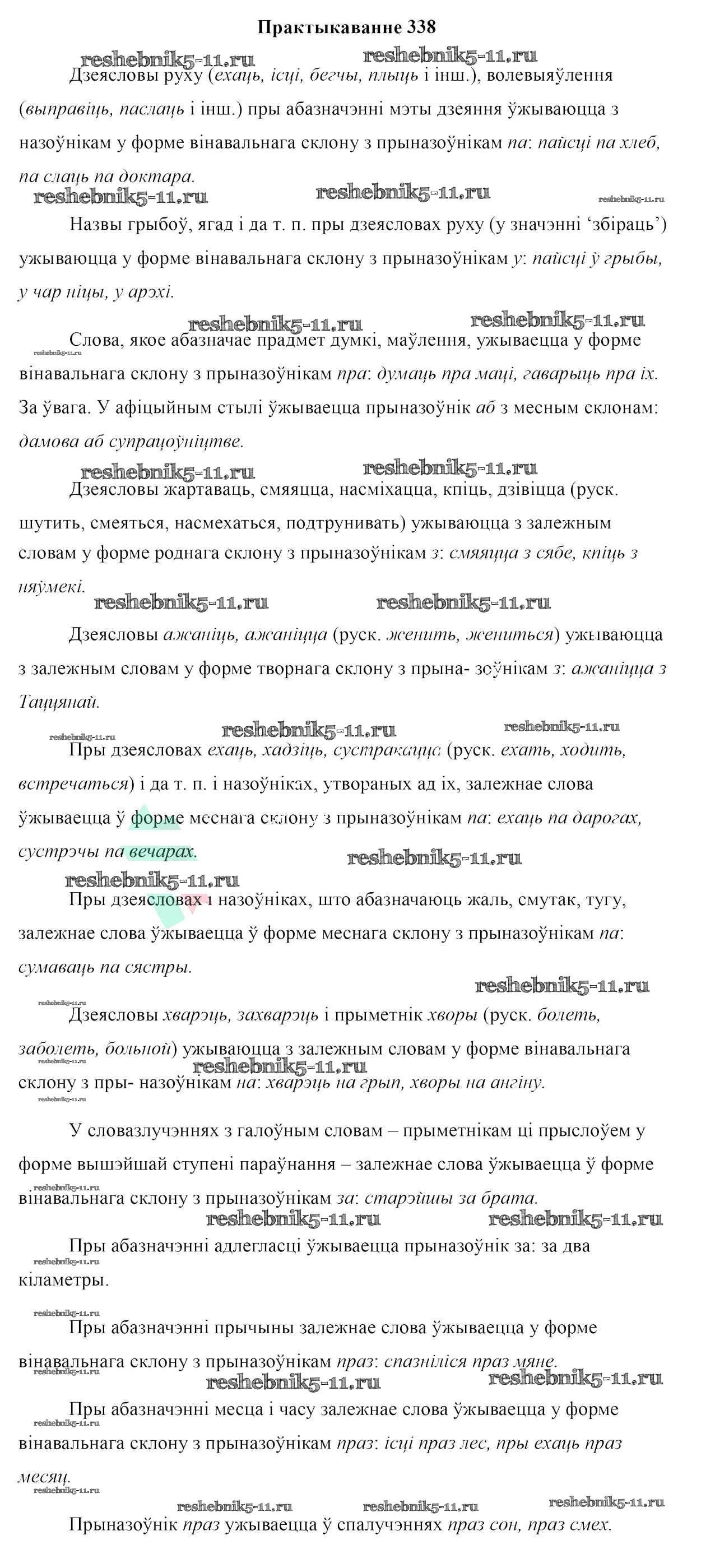 Готовая домашняя работа с ответами по Белорусскому языку за 10 класс Валочка, Васюковіч, Зелянко, Міхнёнак, Якуба Учебник Национальный институт образования 2016 ФГОС - Практыкаванні 338