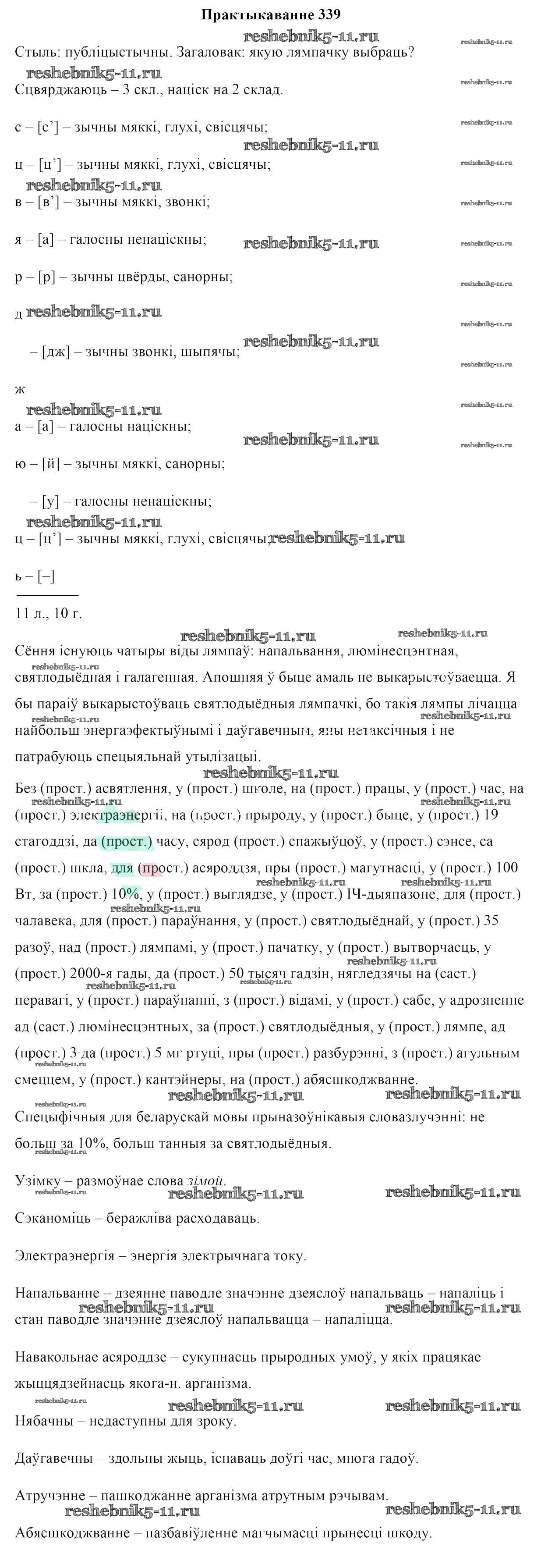 Готовая домашняя работа с ответами по Белорусскому языку за 10 класс Валочка, Васюковіч, Зелянко, Міхнёнак, Якуба Учебник Национальный институт образования 2016 ФГОС - Практыкаванні 339