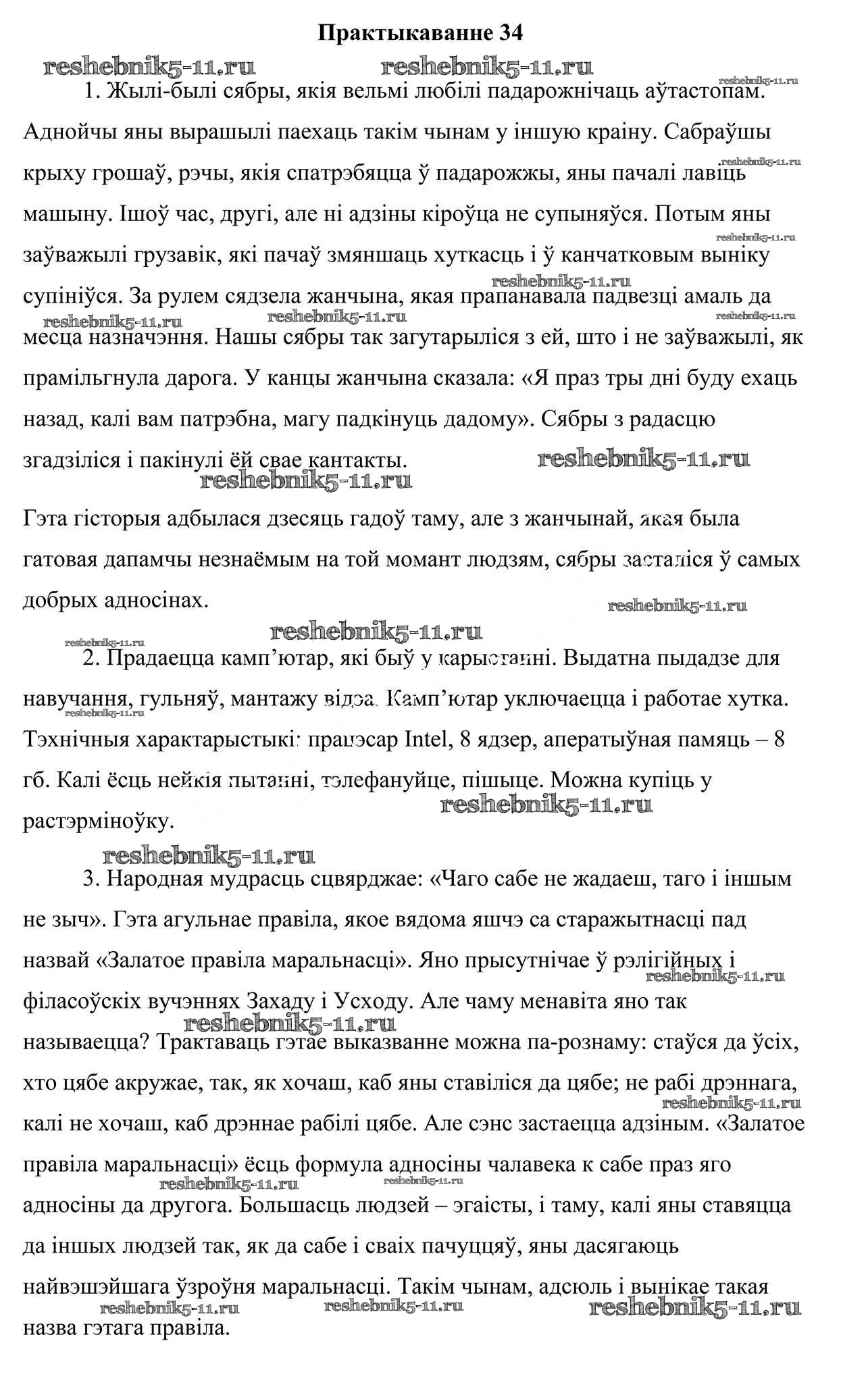Готовая домашняя работа с ответами по Белорусскому языку за 10 класс Валочка, Васюковіч, Зелянко, Міхнёнак, Якуба Учебник Национальный институт образования 2016 ФГОС - Практыкаванні 34