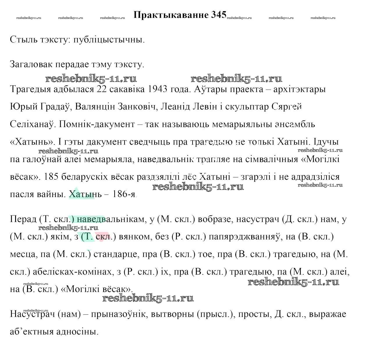 Готовая домашняя работа с ответами по Белорусскому языку за 10 класс Валочка, Васюковіч, Зелянко, Міхнёнак, Якуба Учебник Национальный институт образования 2016 ФГОС - Практыкаванні 345