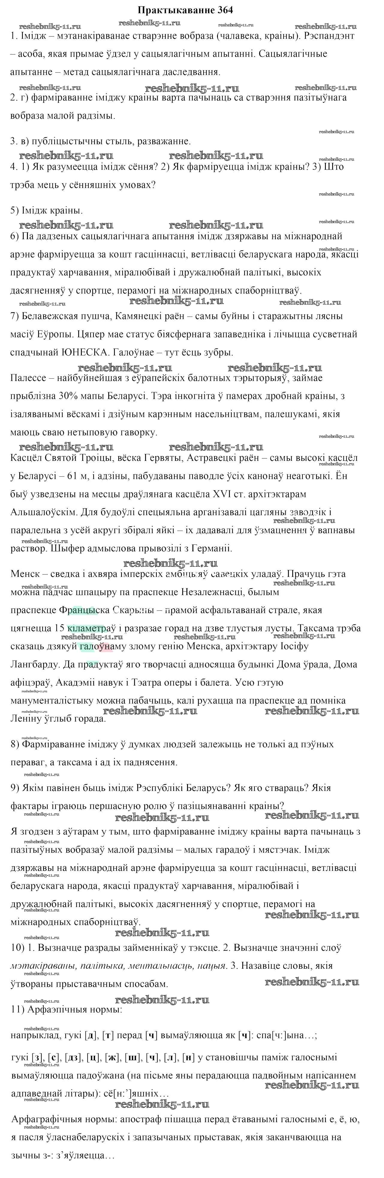 Готовая домашняя работа с ответами по Белорусскому языку за 10 класс Валочка, Васюковіч, Зелянко, Міхнёнак, Якуба Учебник Национальный институт образования 2016 ФГОС - Практыкаванні 364