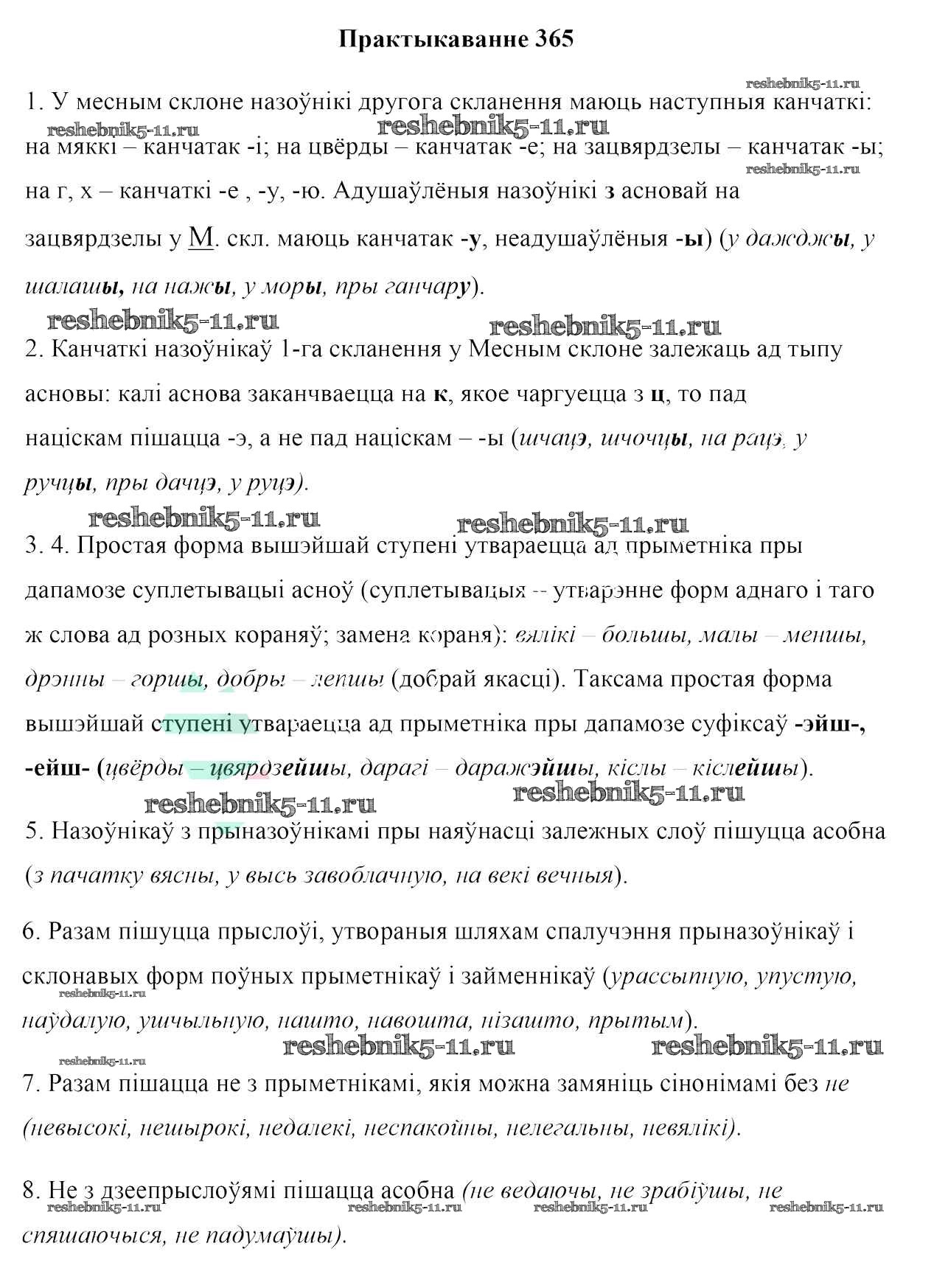 Готовая домашняя работа с ответами по Белорусскому языку за 10 класс Валочка, Васюковіч, Зелянко, Міхнёнак, Якуба Учебник Национальный институт образования 2016 ФГОС - Практыкаванні 365