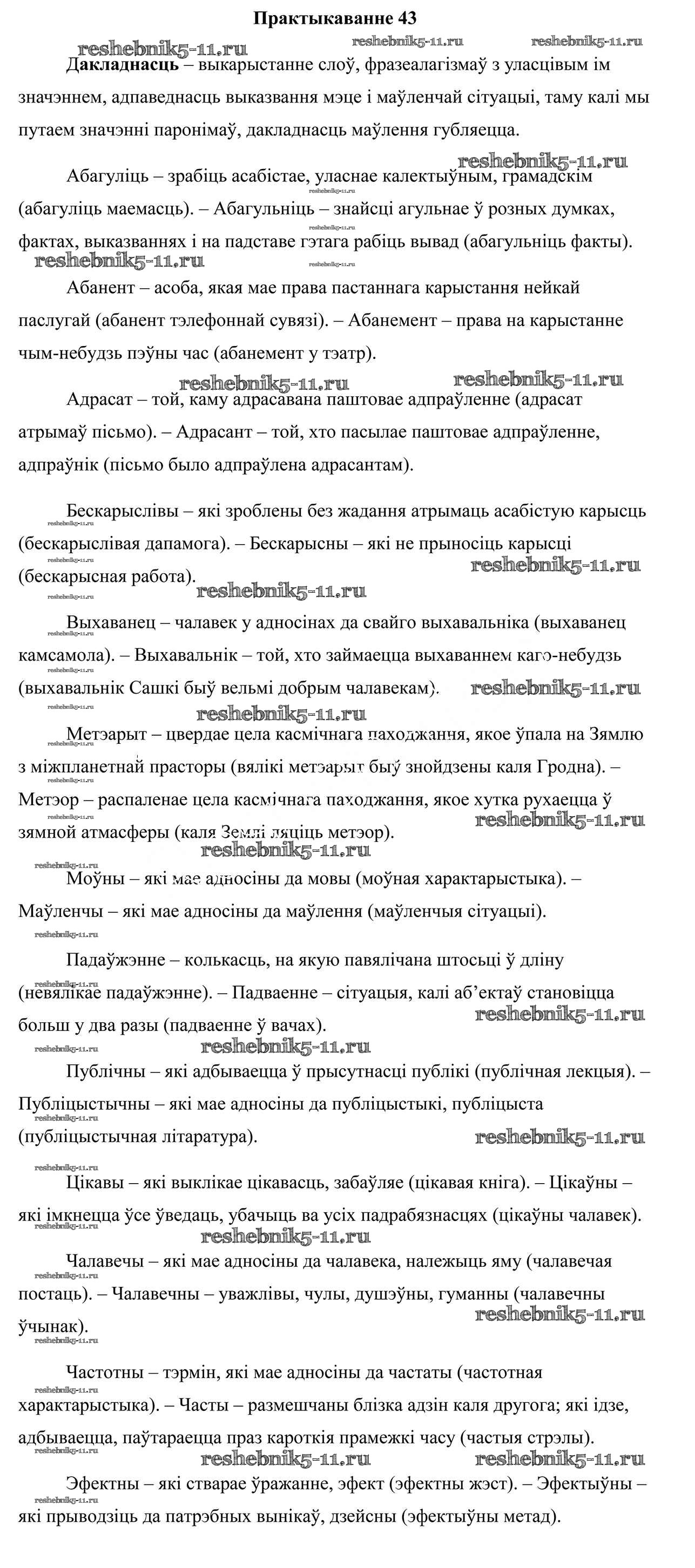 Готовая домашняя работа с ответами по Белорусскому языку за 10 класс Валочка, Васюковіч, Зелянко, Міхнёнак, Якуба Учебник Национальный институт образования 2016 ФГОС - Практыкаванні 43