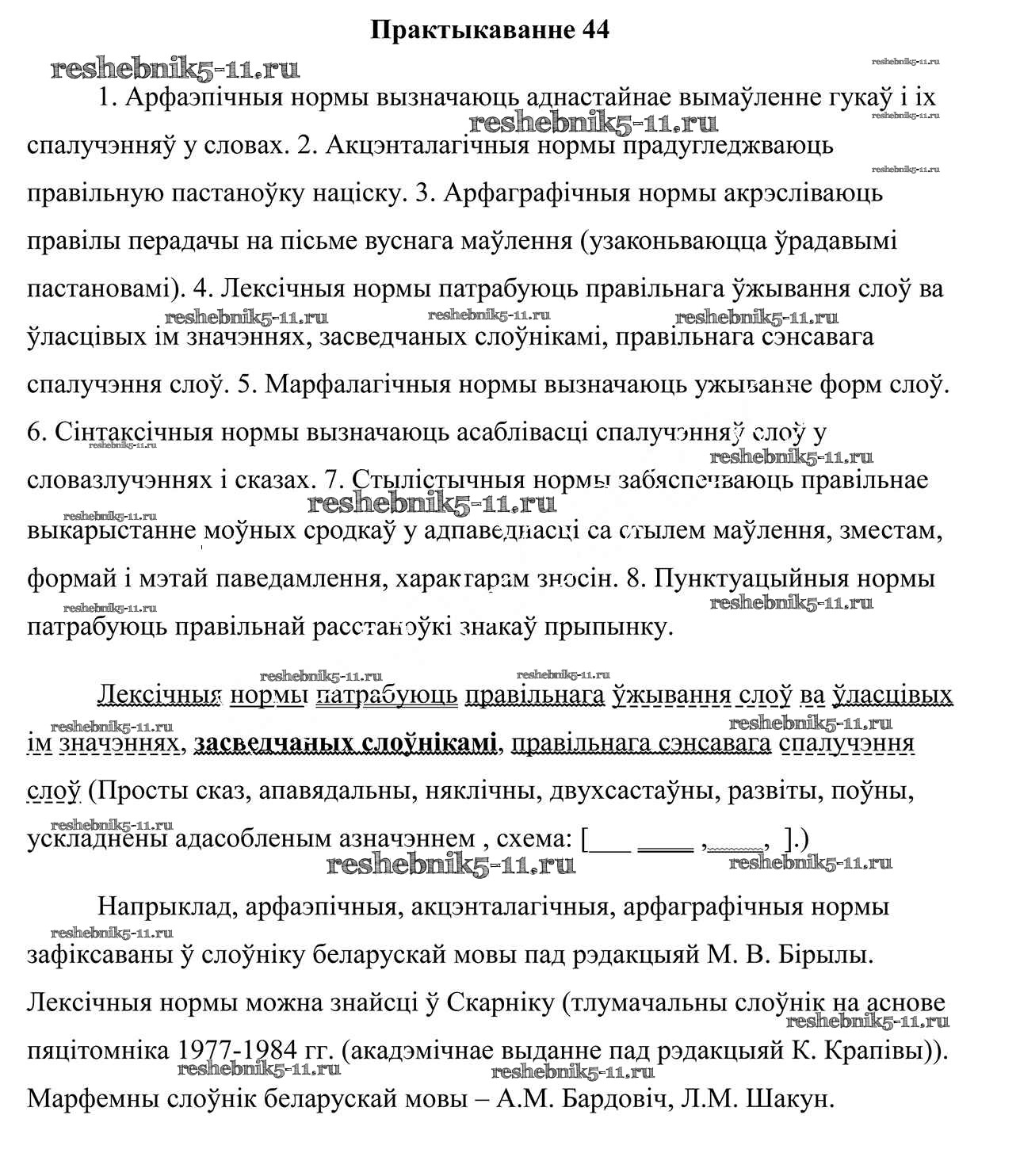 Готовая домашняя работа с ответами по Белорусскому языку за 10 класс Валочка, Васюковіч, Зелянко, Міхнёнак, Якуба Учебник Национальный институт образования 2016 ФГОС - Практыкаванні 44