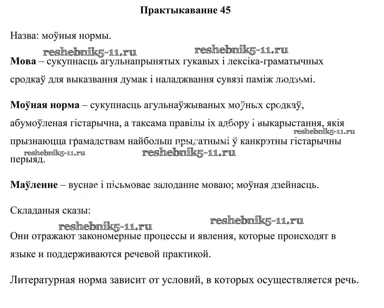 Готовая домашняя работа с ответами по Белорусскому языку за 10 класс Валочка, Васюковіч, Зелянко, Міхнёнак, Якуба Учебник Национальный институт образования 2016 ФГОС - Практыкаванні 45