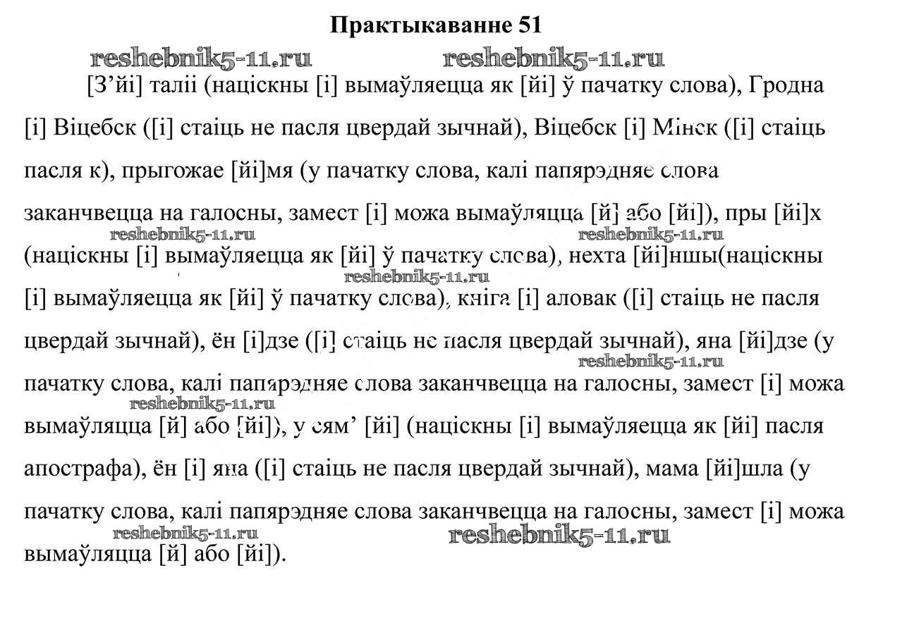 Готовая домашняя работа с ответами по Белорусскому языку за 10 класс Валочка, Васюковіч, Зелянко, Міхнёнак, Якуба Учебник Национальный институт образования 2016 ФГОС - Практыкаванні 51