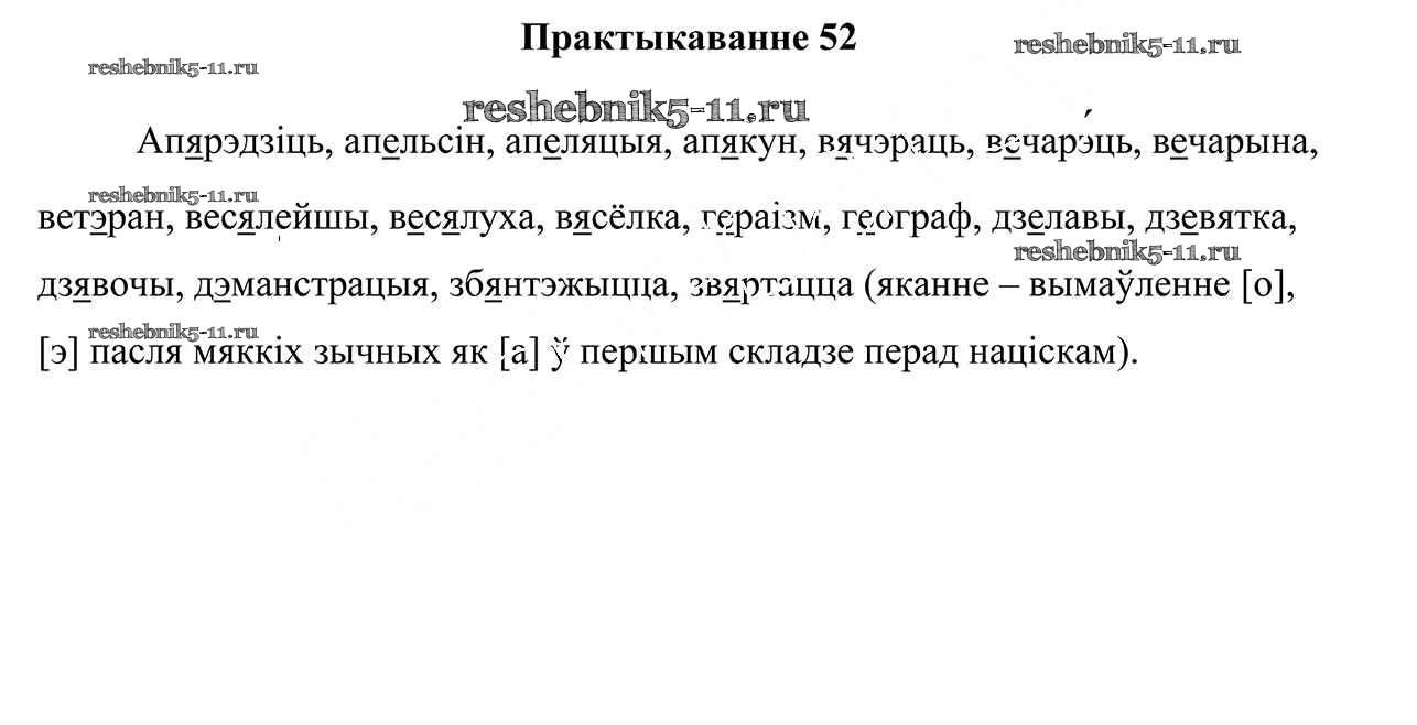 Готовая домашняя работа с ответами по Белорусскому языку за 10 класс Валочка, Васюковіч, Зелянко, Міхнёнак, Якуба Учебник Национальный институт образования 2016 ФГОС - Практыкаванні 52