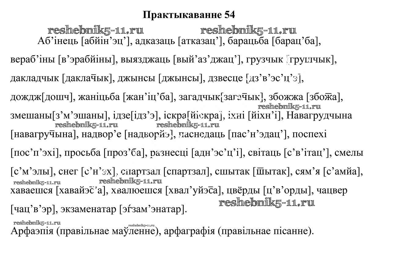 Готовая домашняя работа с ответами по Белорусскому языку за 10 класс Валочка, Васюковіч, Зелянко, Міхнёнак, Якуба Учебник Национальный институт образования 2016 ФГОС - Практыкаванні 54