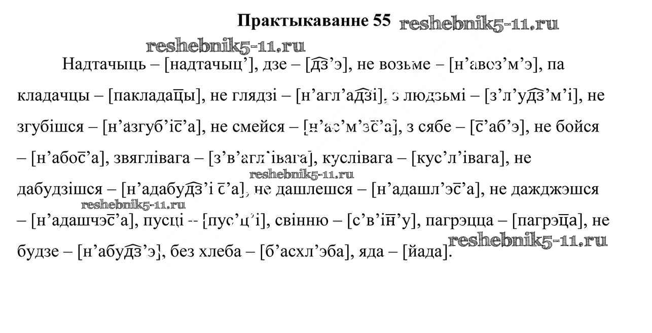 Готовая домашняя работа с ответами по Белорусскому языку за 10 класс Валочка, Васюковіч, Зелянко, Міхнёнак, Якуба Учебник Национальный институт образования 2016 ФГОС - Практыкаванні 55