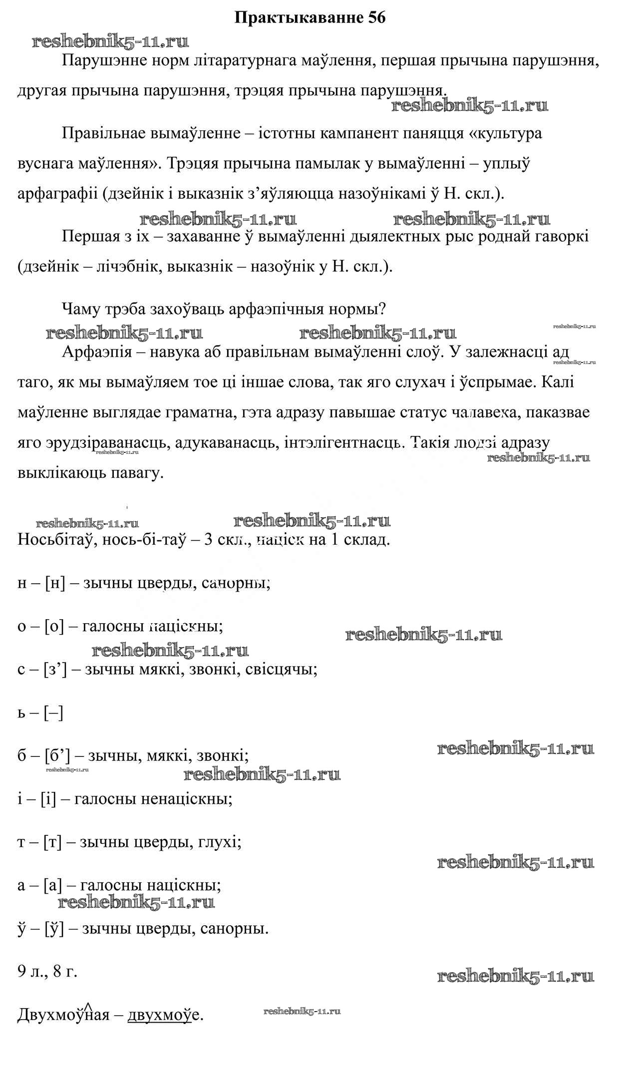 Готовая домашняя работа с ответами по Белорусскому языку за 10 класс Валочка, Васюковіч, Зелянко, Міхнёнак, Якуба Учебник Национальный институт образования 2016 ФГОС - Практыкаванні 56