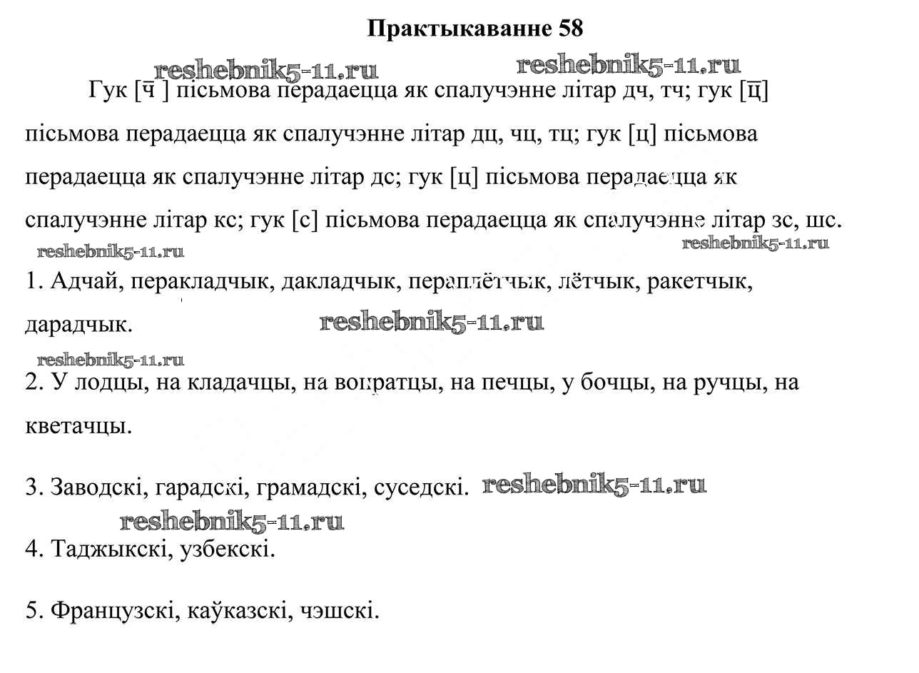 Готовая домашняя работа с ответами по Белорусскому языку за 10 класс Валочка, Васюковіч, Зелянко, Міхнёнак, Якуба Учебник Национальный институт образования 2016 ФГОС - Практыкаванні 58