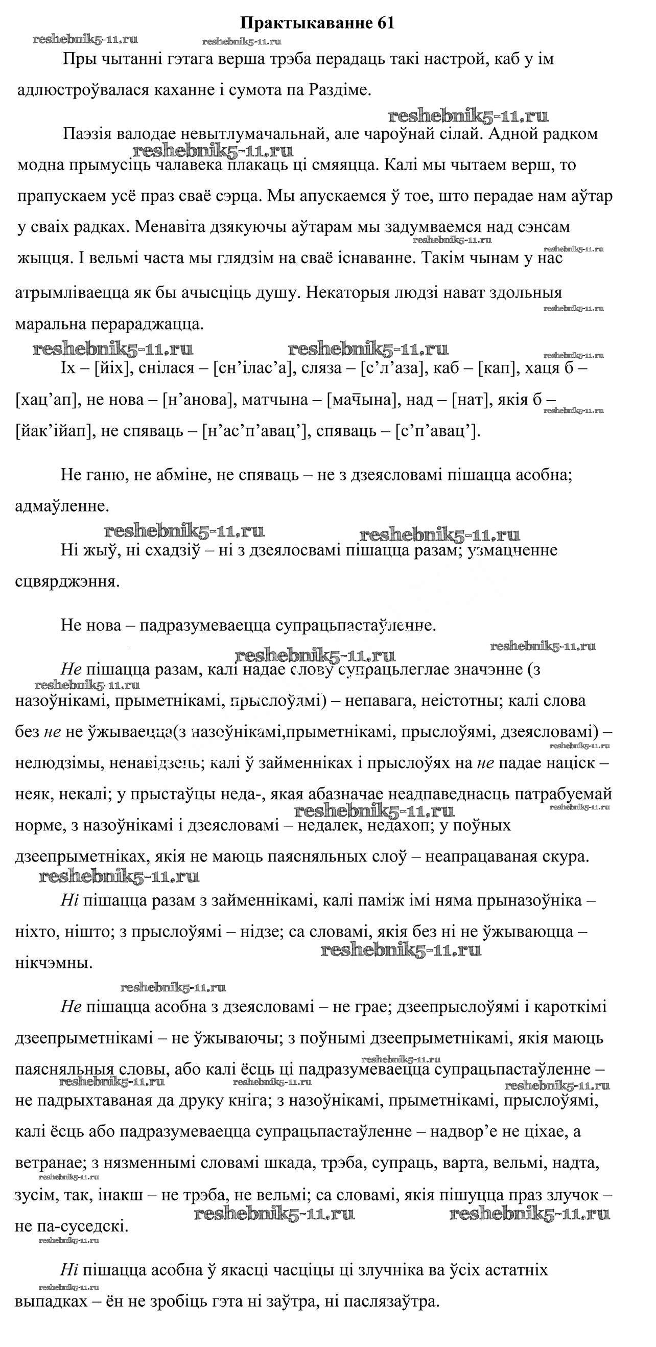 Готовая домашняя работа с ответами по Белорусскому языку за 10 класс Валочка, Васюковіч, Зелянко, Міхнёнак, Якуба Учебник Национальный институт образования 2016 ФГОС - Практыкаванні 61