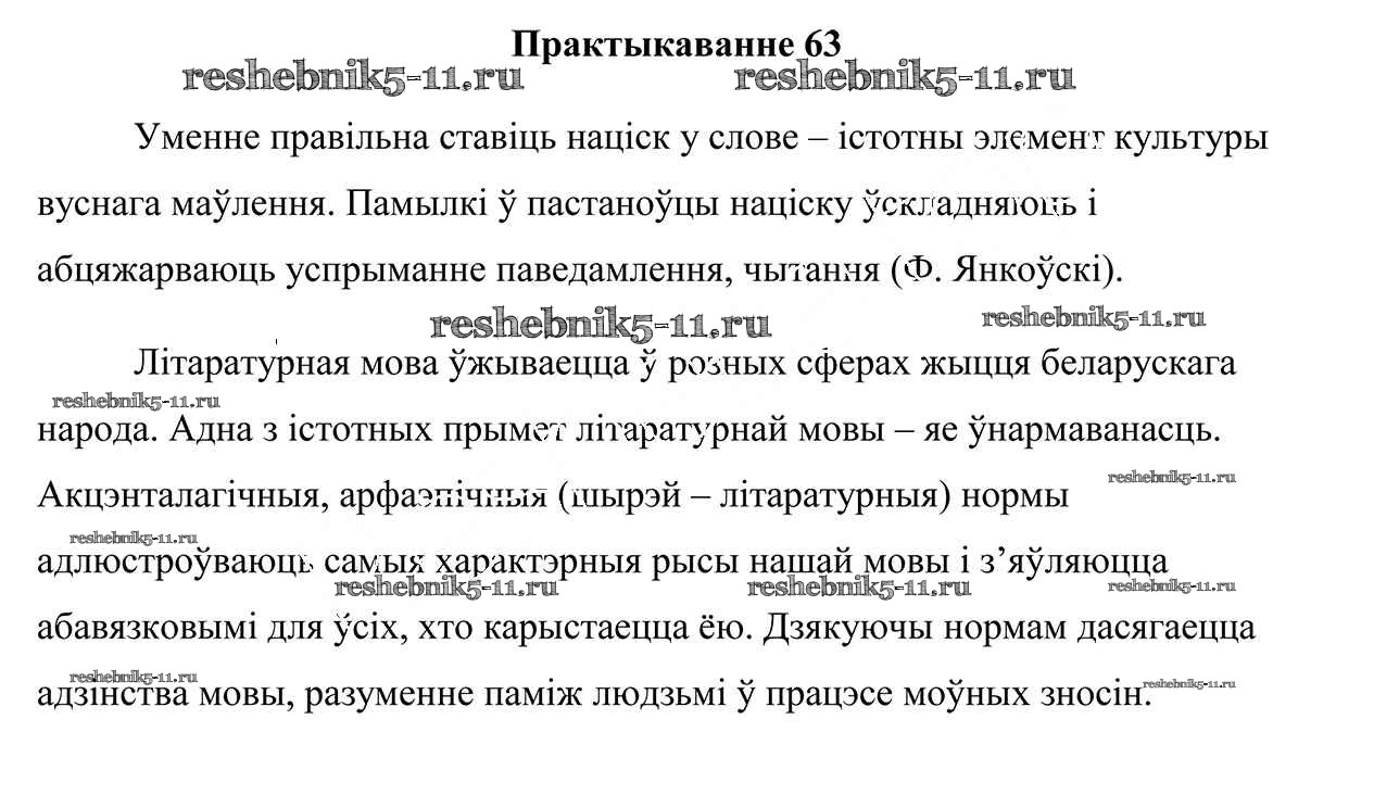 Готовая домашняя работа с ответами по Белорусскому языку за 10 класс Валочка, Васюковіч, Зелянко, Міхнёнак, Якуба Учебник Национальный институт образования 2016 ФГОС - Практыкаванні 63
