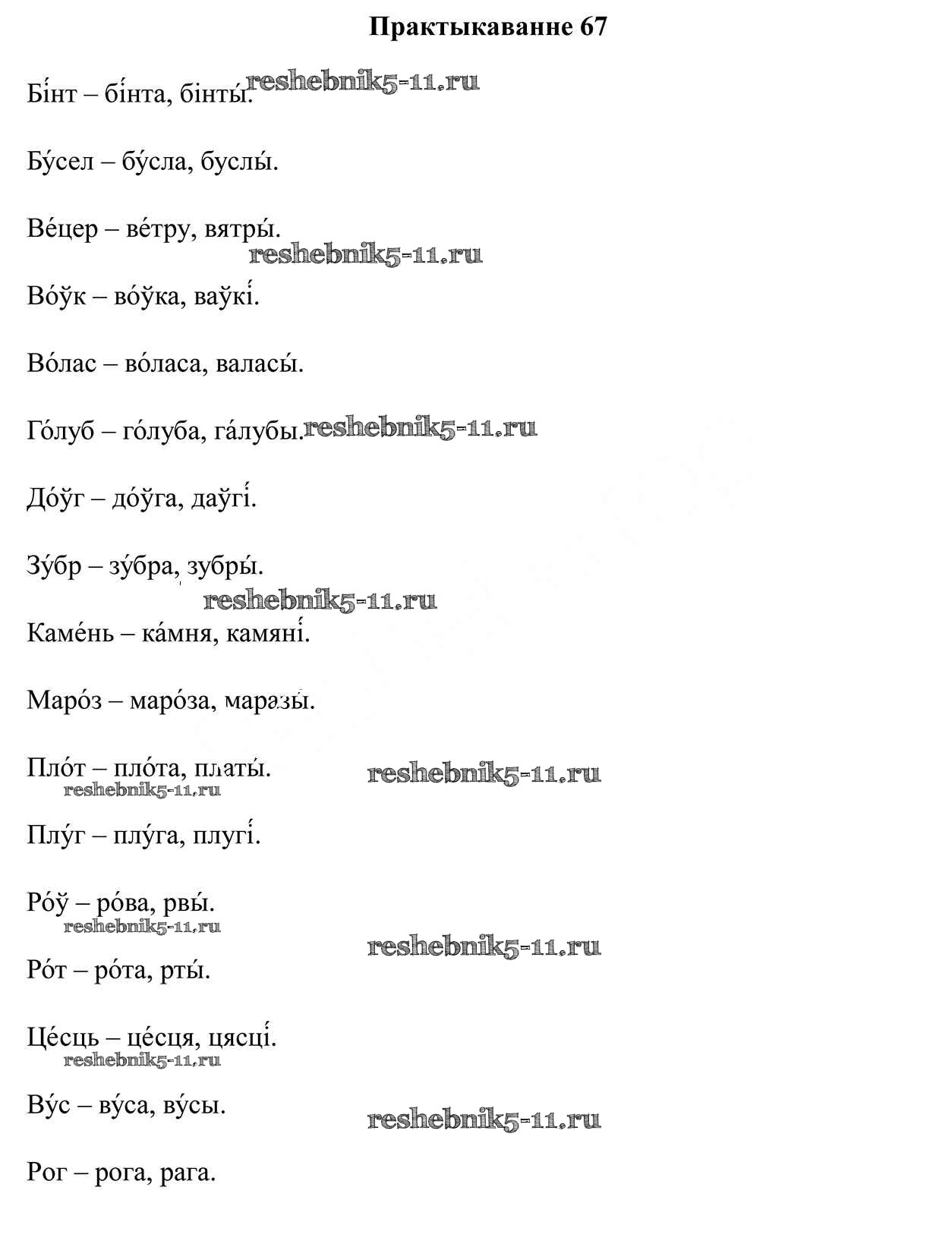 Готовая домашняя работа с ответами по Белорусскому языку за 10 класс Валочка, Васюковіч, Зелянко, Міхнёнак, Якуба Учебник Национальный институт образования 2016 ФГОС - Практыкаванні 67