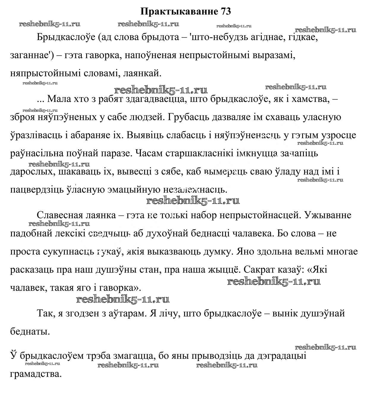 Готовая домашняя работа с ответами по Белорусскому языку за 10 класс Валочка, Васюковіч, Зелянко, Міхнёнак, Якуба Учебник Национальный институт образования 2016 ФГОС - Практыкаванні 73