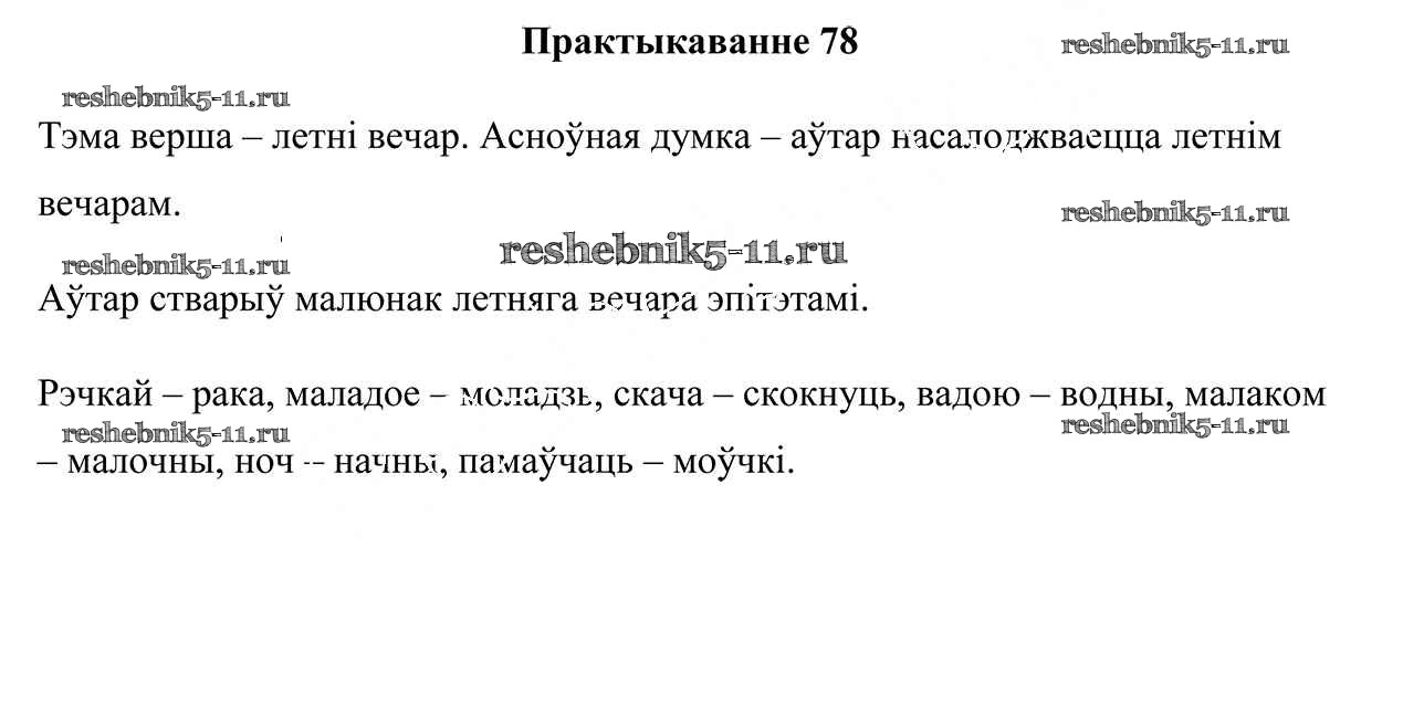 Готовая домашняя работа с ответами по Белорусскому языку за 10 класс Валочка, Васюковіч, Зелянко, Міхнёнак, Якуба Учебник Национальный институт образования 2016 ФГОС - Практыкаванні 78