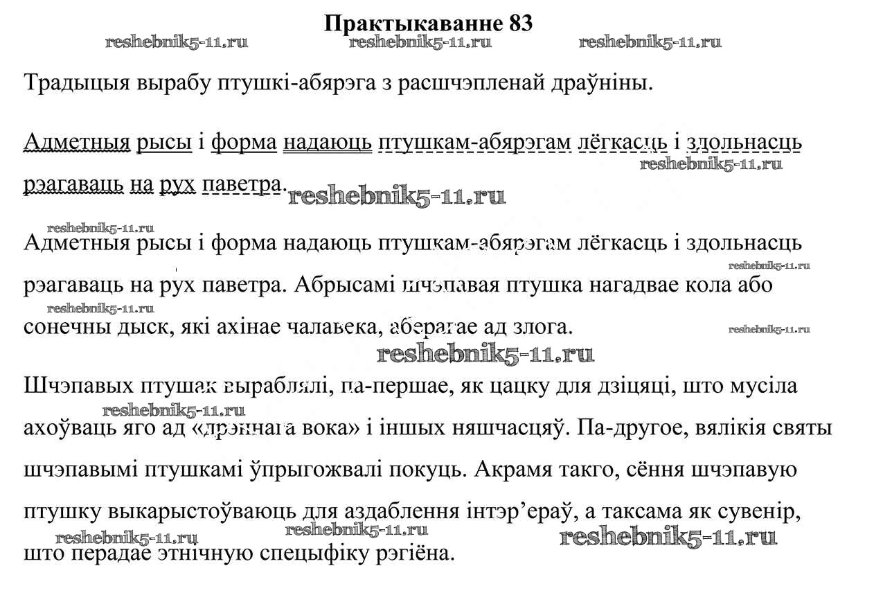 Готовая домашняя работа с ответами по Белорусскому языку за 10 класс Валочка, Васюковіч, Зелянко, Міхнёнак, Якуба Учебник Национальный институт образования 2016 ФГОС - Практыкаванні 83