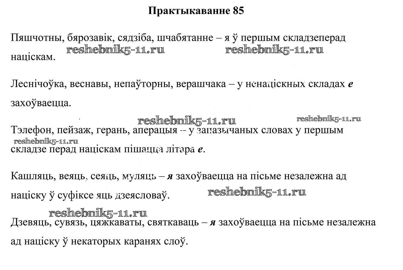 Готовая домашняя работа с ответами по Белорусскому языку за 10 класс Валочка, Васюковіч, Зелянко, Міхнёнак, Якуба Учебник Национальный институт образования 2016 ФГОС - Практыкаванні 85