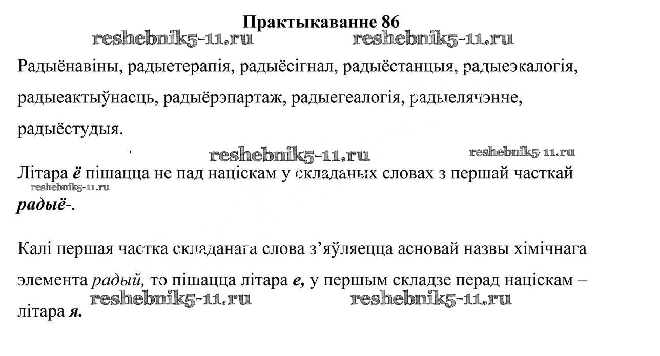 Готовая домашняя работа с ответами по Белорусскому языку за 10 класс Валочка, Васюковіч, Зелянко, Міхнёнак, Якуба Учебник Национальный институт образования 2016 ФГОС - Практыкаванні 86