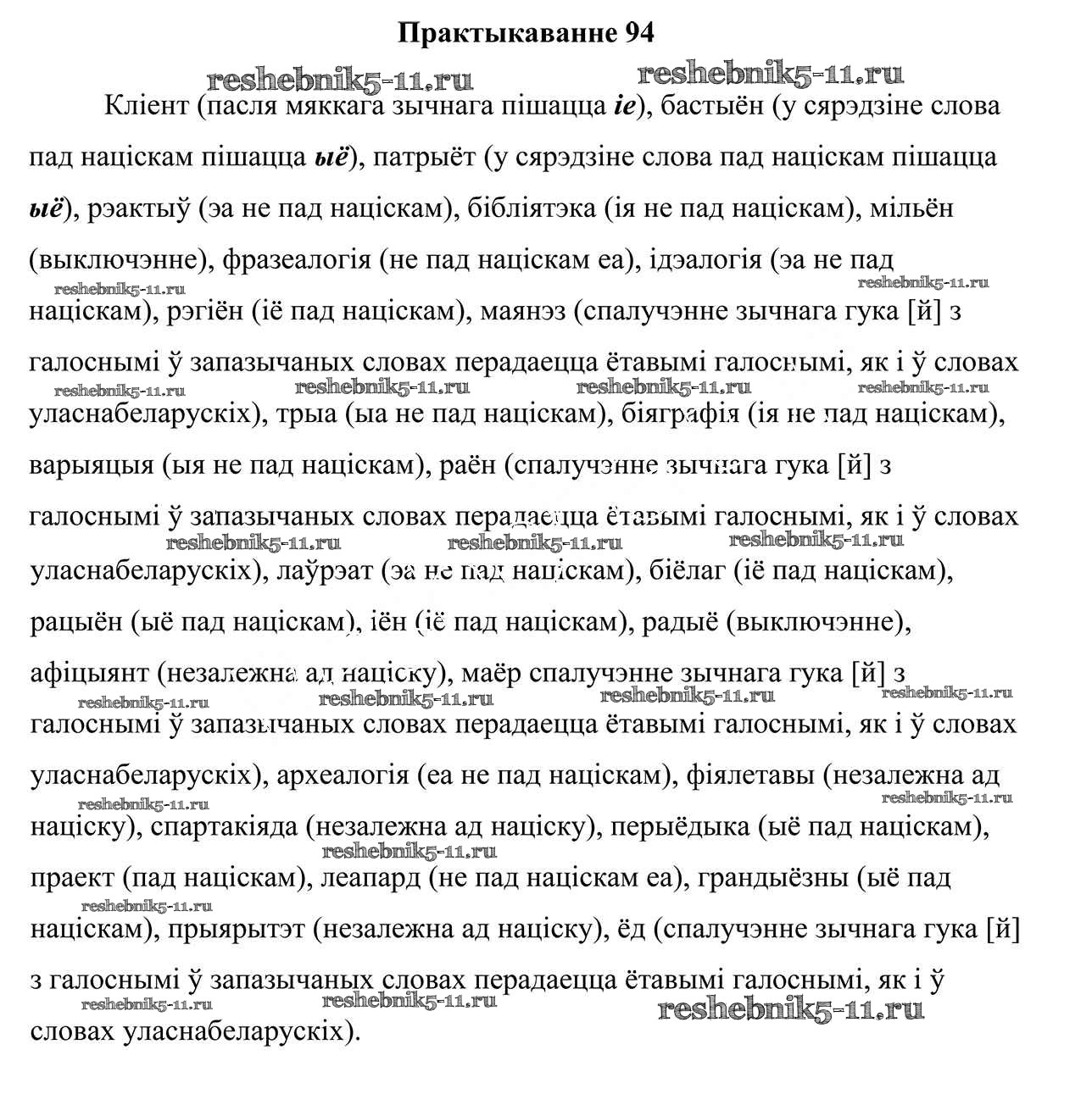 Готовая домашняя работа с ответами по Белорусскому языку за 10 класс Валочка, Васюковіч, Зелянко, Міхнёнак, Якуба Учебник Национальный институт образования 2016 ФГОС - Практыкаванні 94