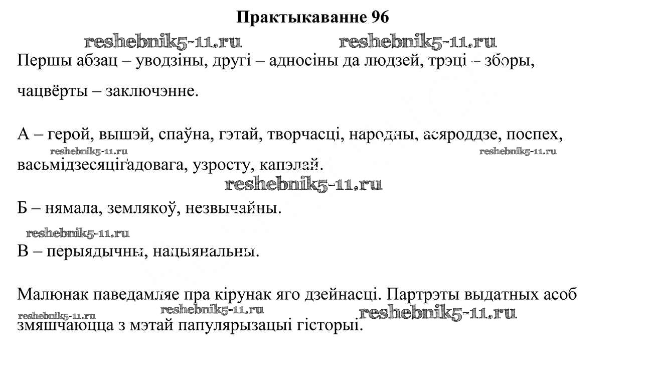 Готовая домашняя работа с ответами по Белорусскому языку за 10 класс Валочка, Васюковіч, Зелянко, Міхнёнак, Якуба Учебник Национальный институт образования 2016 ФГОС - Практыкаванні 96