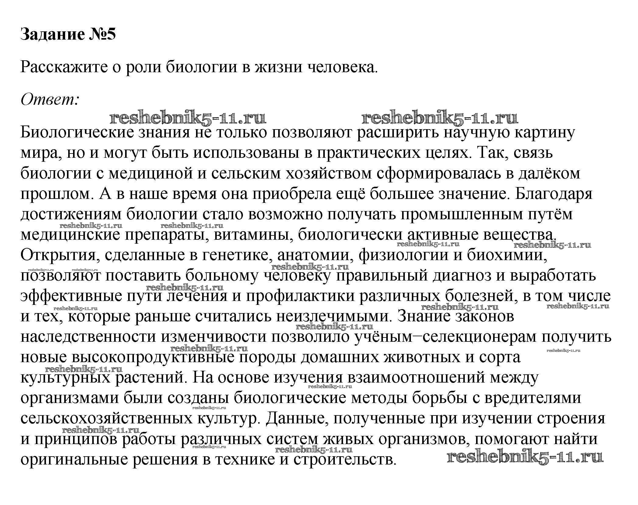 Готовая домашняя работа с ответами по Биологии за 10 класс Пасечник, Каменский, Рубцов Учебник Линия жизни Просвещение 2018 ФГОС - Тренируемся 5