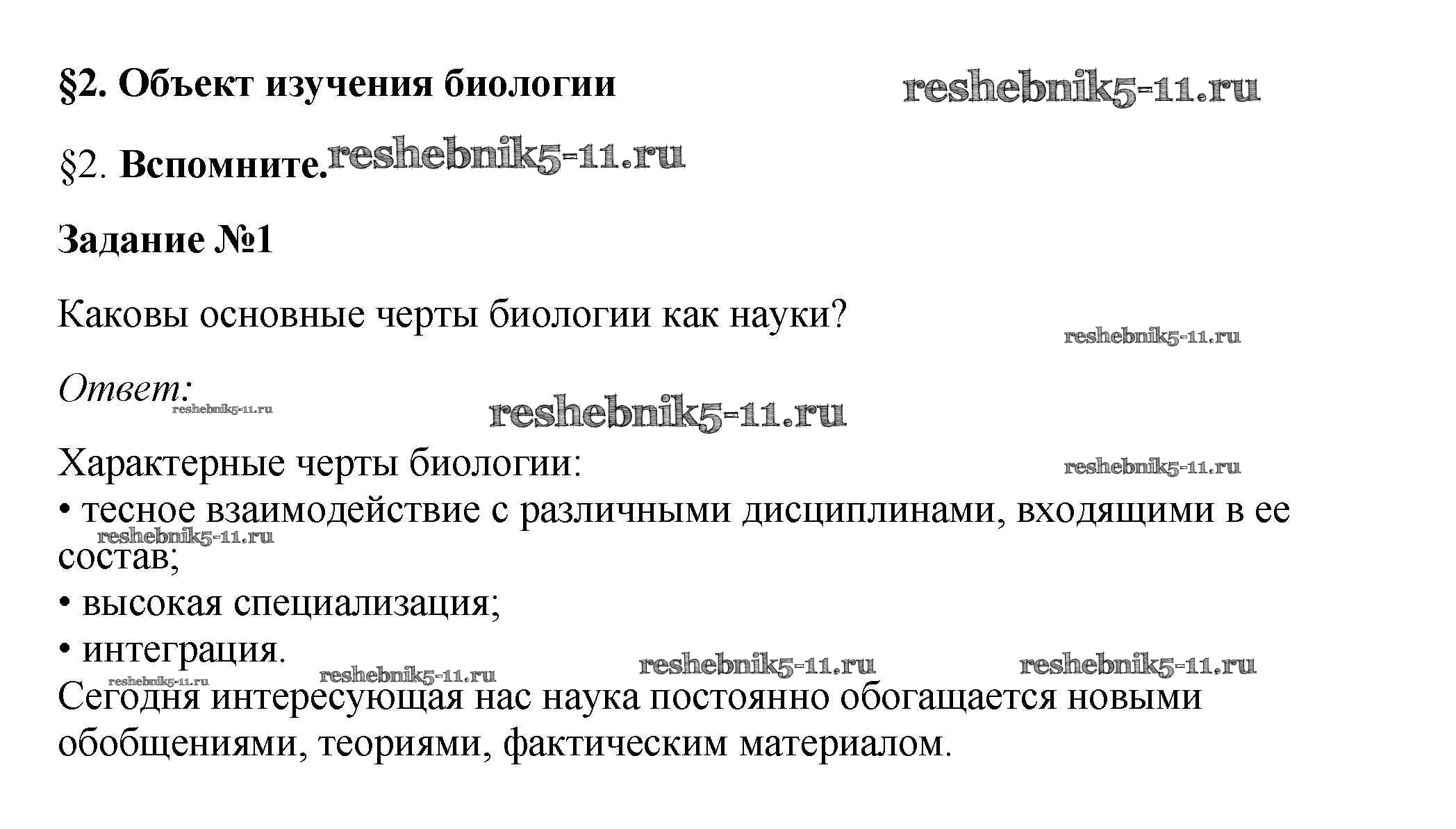§2. Объект изучения биологии