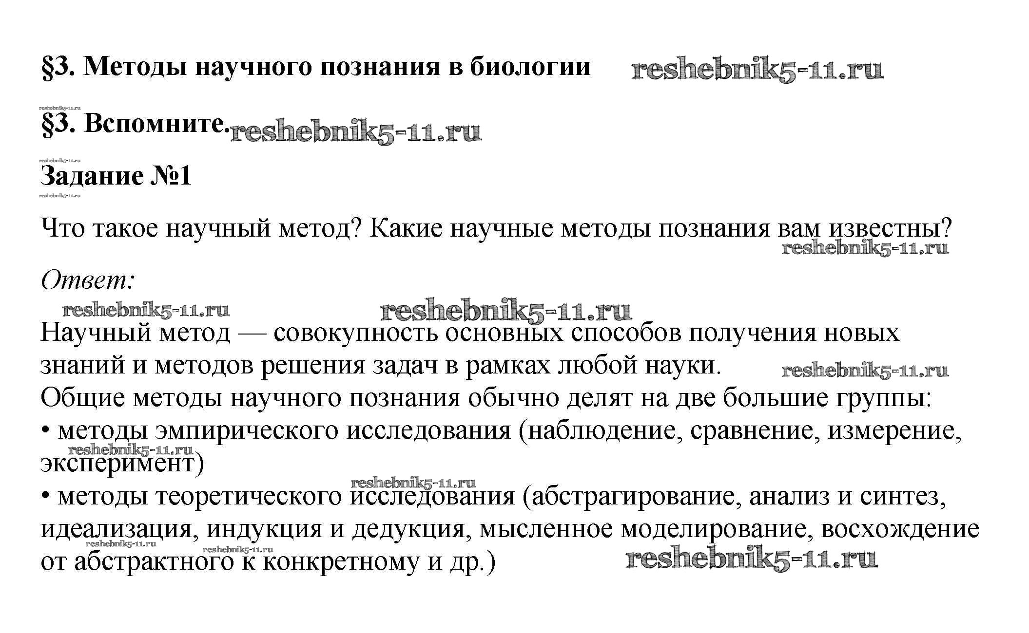 Готовая домашняя работа с ответами по Биологии за 10 класс Пасечник, Каменский, Рубцов Учебник Линия жизни Просвещение 2018 ФГОС - Вспомните 1