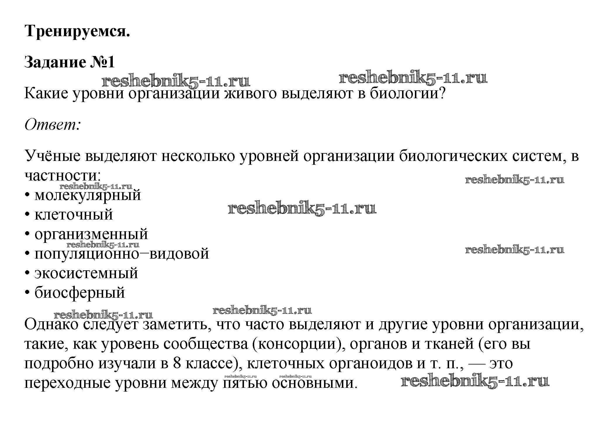 Готовая домашняя работа с ответами по Биологии за 10 класс Пасечник, Каменский, Рубцов Учебник Линия жизни Просвещение 2018 ФГОС - Тренируемся 1