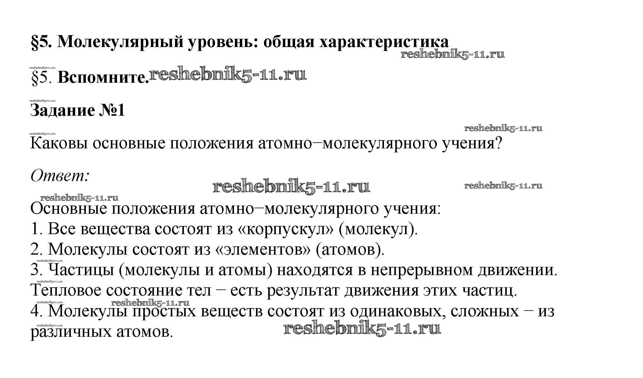 Готовая домашняя работа с ответами по Биологии за 10 класс Пасечник, Каменский, Рубцов Учебник Линия жизни Просвещение 2018 ФГОС - Вспомните 1