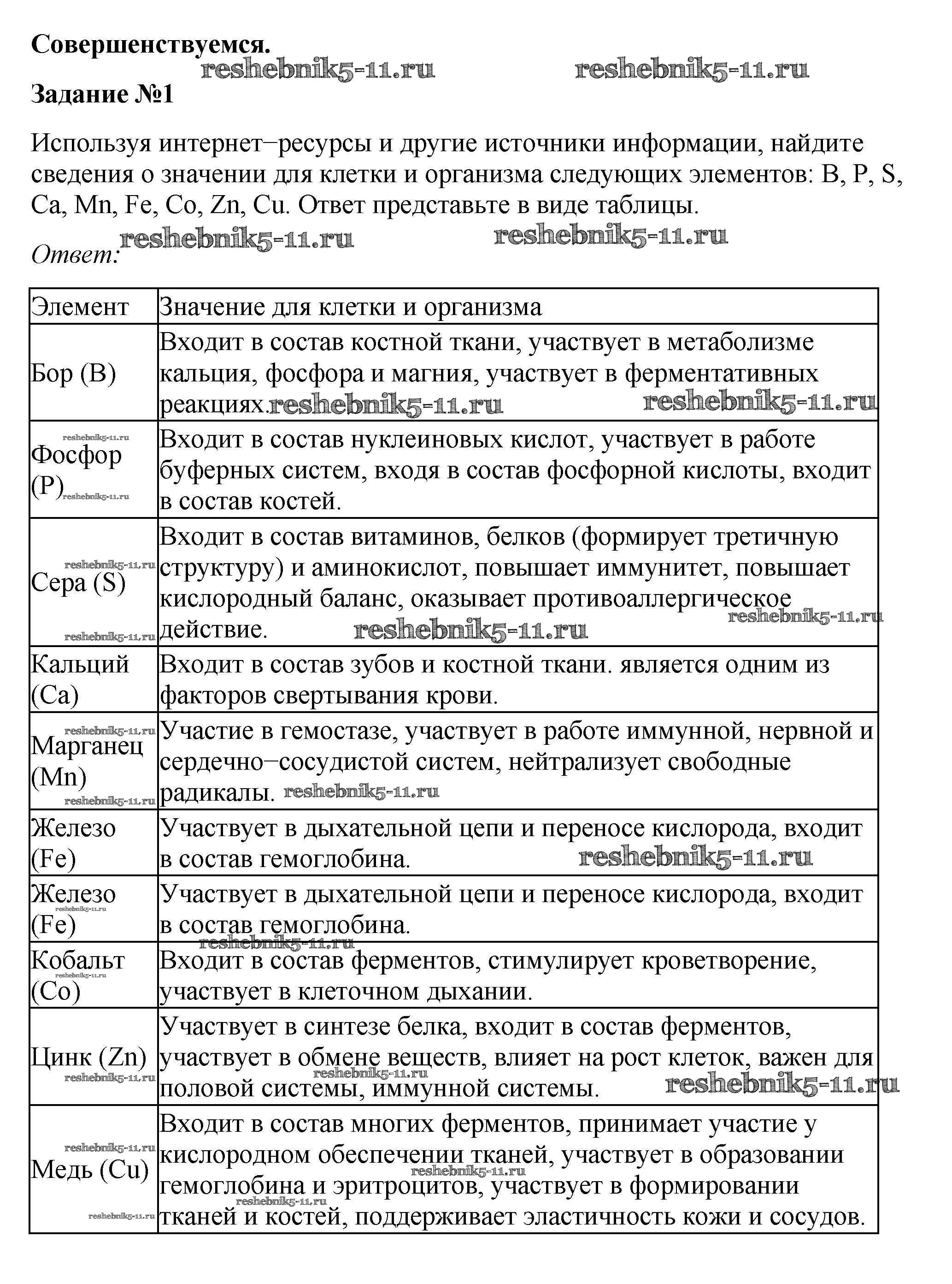 Готовая домашняя работа с ответами по Биологии за 10 класс Пасечник, Каменский, Рубцов Учебник Линия жизни Просвещение 2018 ФГОС - Совершенствуемся 1