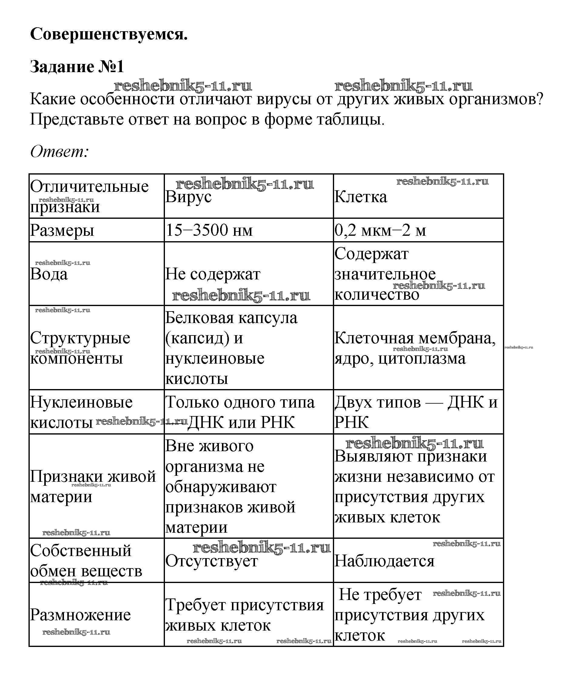 Готовая домашняя работа с ответами по Биологии за 10 класс Пасечник, Каменский, Рубцов Учебник Линия жизни Просвещение 2018 ФГОС - Совершенствуемся 1